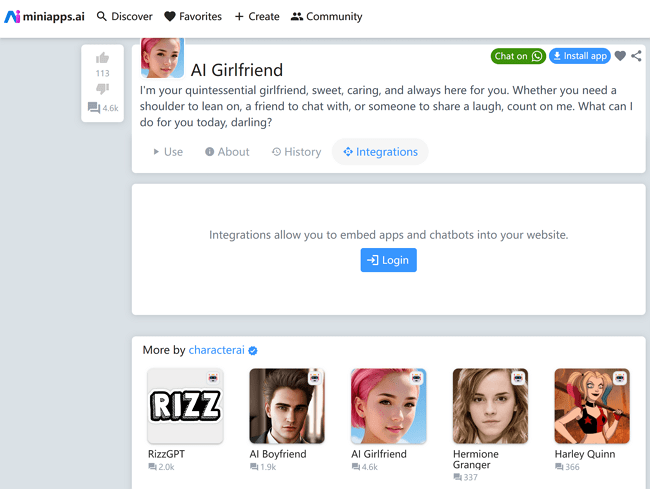 Whether you need emotional support, a friendly chat, or just someone to share a laugh with, this AI-powered chatbot has got you covered. The platform boasts a high user rating and a community that seems to appreciate its features.