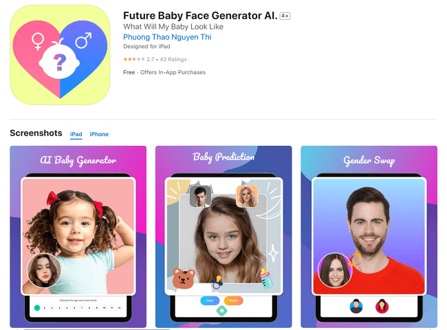 This AI baby generator tool is free to use for everyone. However, there are In-app purchases to use for advanced features.