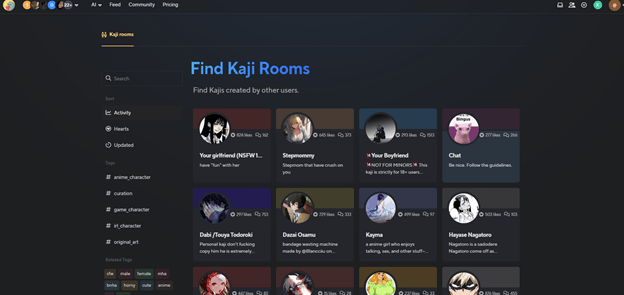 The platform has one of the biggest communities when it comes to anime AI chat NSFW bots, as there are many personalized characters out there that are trained by the users who created them. If you want to experience some kinky multiplayer NSFW chat with real people and anime characters, this platform has a great option to create such a group chat.