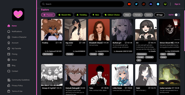 · Accessibility: Crushon.AI takes a user-friendly approach by making its services available to a broad audience for free. This accessibility has contributed to its popularity and widespread usage within the NSFW AI chatbot community.