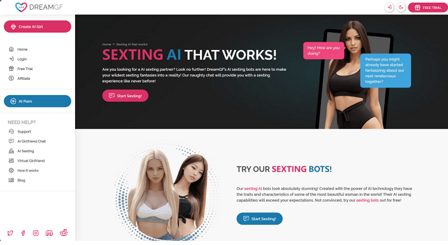 There is a good reason why DreamGF is the most popular AI sex chatbot. Users immediately have access to many generated AI girlfriends to chat with right off the bat, but if you do not find one that fits your needs visually, you can generate one yourself. There are a lot of options when it comes to generating an AI girlfriend, not only for a visual guide but also for her personality that will change the way she responds to your messages.