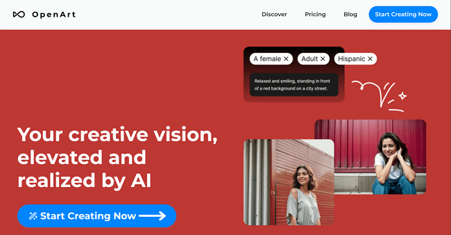 OpenArt AI stands out as a user-friendly Discord AI image generator. It incorporates an intelligent CLIP-based search system, enabling users to explore many AI-generated artworks. Moreover, individuals can share and submit the creations generated by their AI.