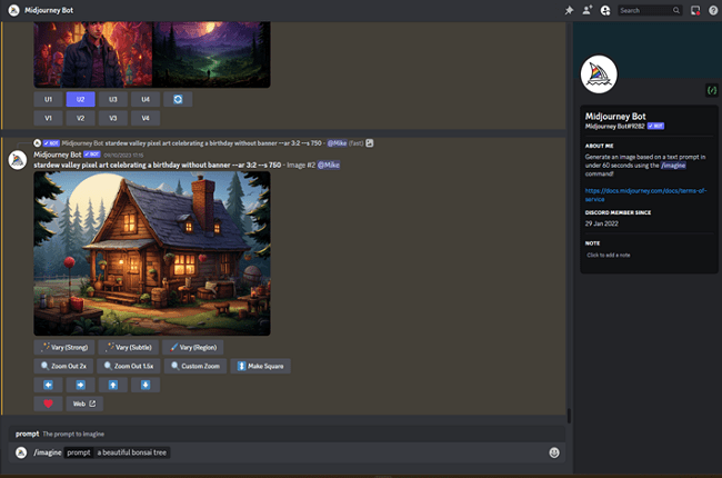 Again, the Midjourney bot can help.