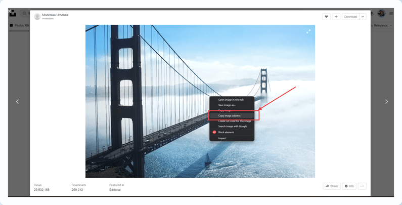 ● In most browsers, you can obtain an image URL by right-clicking the image and opting for 'Copy Image Address.'